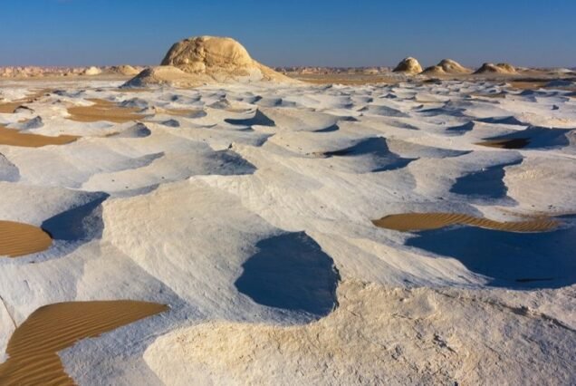 Continue to the White Desert National Park and marvel at its otherworldly white rock